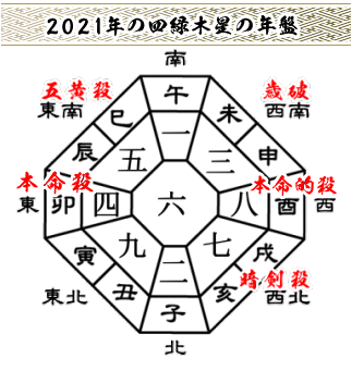 2021年7月の 四緑木星は、「南」に回座しこの方角は本命殺となり暗剣殺も重なります。